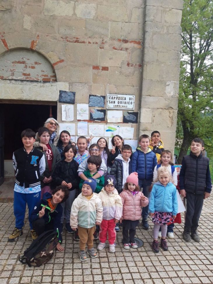 Al termine della piccola cerimonia i premiati e, insieme a loro tanti bambini che hanno scelto Treville per una domenica all’aperto, hanno intrapreso la passeggiata di “Aspettando la Primavera” (e mai come quest’anno il titolo si è sposato al clima incerto della giornata, conservando i profumi e i tenui colori del risveglio della natura) per raggiungere attraverso sentieri erbosi la chiesetta dedicata a San Quirico (XII secolo),dove ad attenderli c’era la pittrice casalese Raffaella Marotto che ha proposto un laboratorio di disegno con pastelli e gessetti coinvolgendo i piccoli partecipanti nella realizzazione di un disegno. Tutte le “opere” sono poi state temporaneamente esposte sulla facciata romanica di San Quirico per una bella foto ricordo.