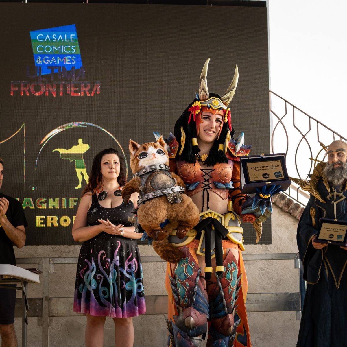 Cosplayer - Il livello è sempre più alto, sia per i personaggi che si sono aggirati nella Comics, sia per quelli dei concorsi. Il contest top: “10 magnifici Eroi” è stato vinto da Sonia Pinciaroli (Lilit Cosplay con il personaggio di Tetsucabra di Monster Hunter),quello aperto a tutti, condotto da Giorgia Vacchini in modo spumeggiante, ha visto al primo posto per il miglior costume maschile Andrea Lovecchio, per il miglior costume sartoriale Sharon Citerino, per la miglior armatura Luca Rossini, per la miglior interpretazione Denis Santoro, per il miglior costume femminile Marina Supparo e per miglior Gruppo il Team Becilli.
